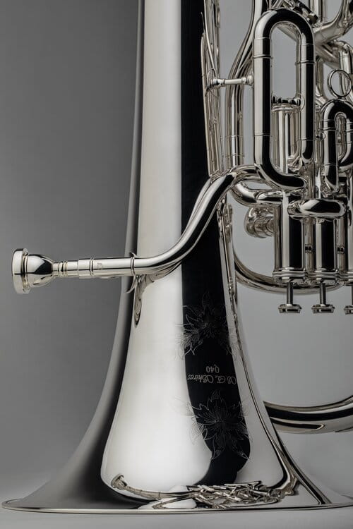 Model EUQ40TS zapewnia swobodne zadęcie, klarowność dźwięku oraz znakomitą projekcję, z których słyną instrumenty S.E. Shires. Wyposażone w 12-calową, dwuczęściową, ręcznie kutą czarę z ustawieniem pionowym, wykonaną ze średniomasywnego mosiądzu żółtego z lutowanym rantem, to eufonium kompensacyjne w stroju B♭ oferuje szerokie i ciepłe brzmienie w całym rejestrze. Doskonale sprawdzi się zarówno w zespole, jak i w partiach solowych — to znakomity wybór dla każdego muzyka.