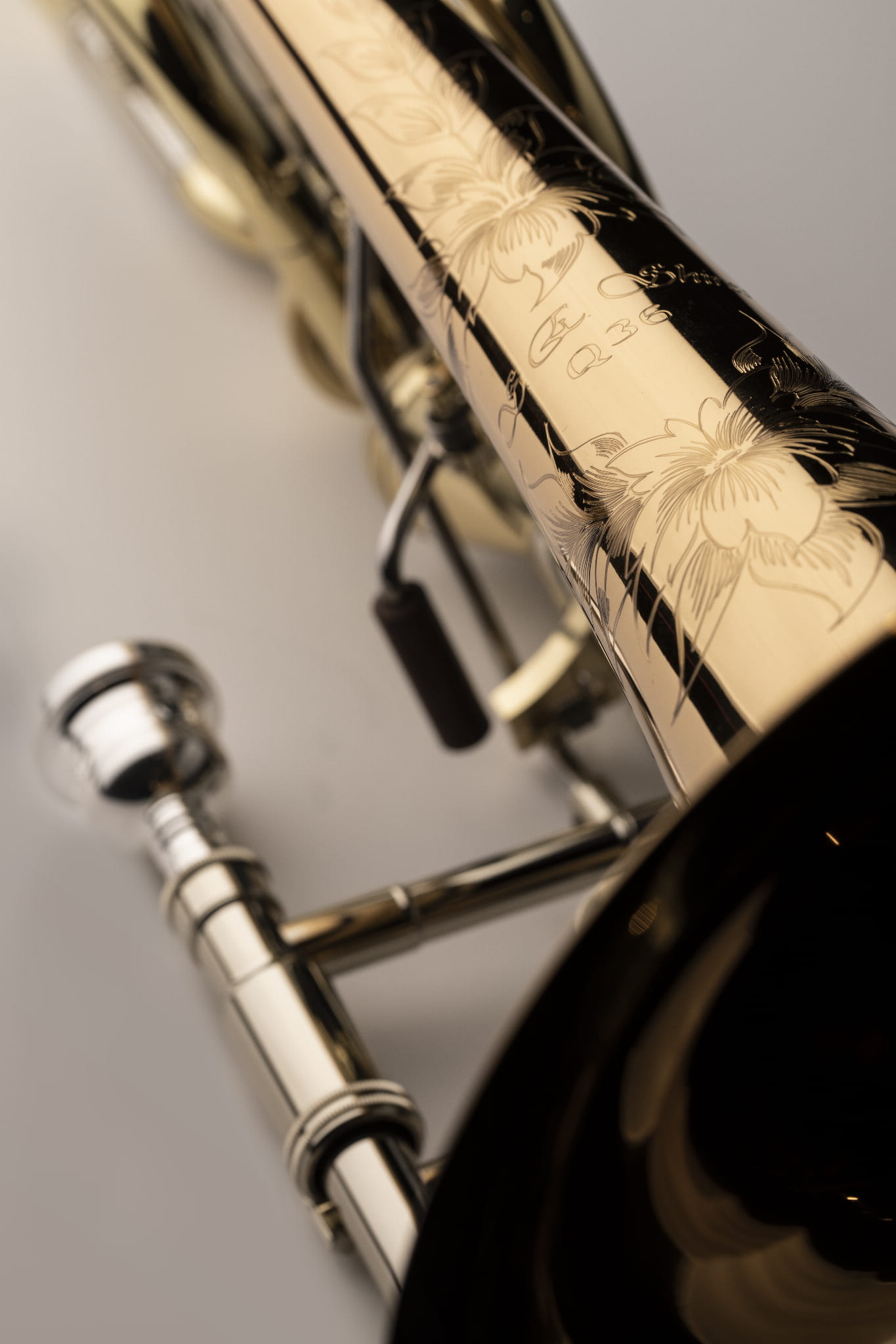 Wszechstronny puzon basowy TBQ36GA charakteryzuje się klarownością dźwięku i doskonałą projekcją, z których słyną instrumenty S.E. Shires. Czara QYB o średnicy 9½ cala, wykonana ręcznie metodą młotkowania, ma dwuczęściową konstrukcję z lekkiego złotego mosiądzu z lutowanym rantem. Zapewnia czyste, donośne brzmienie z doskonałą projekcją i pełnym, głębokim niskim rejestrem. Suwak o szerokiej menzurze 0.562 cala, wykonany z żółtego mosiądzu w standardowej grubości, oferuje szerokie brzmienie przy zachowaniu klarowności i barwy dźwięku. Niklowy krąglik suwaka nadaje artykulacji ostrość i jasność. Niezależne wentyle axial-flow pozwalają zachować klarowność i komfort gry we wszystkich rejestrach. Ten niezależny system zaworów oferuje większą elastyczność w wyborze pozycji suwaka i wentyli. Puzon Q36GA doskonale sprawdzi się w każdym zespole muzycznym.