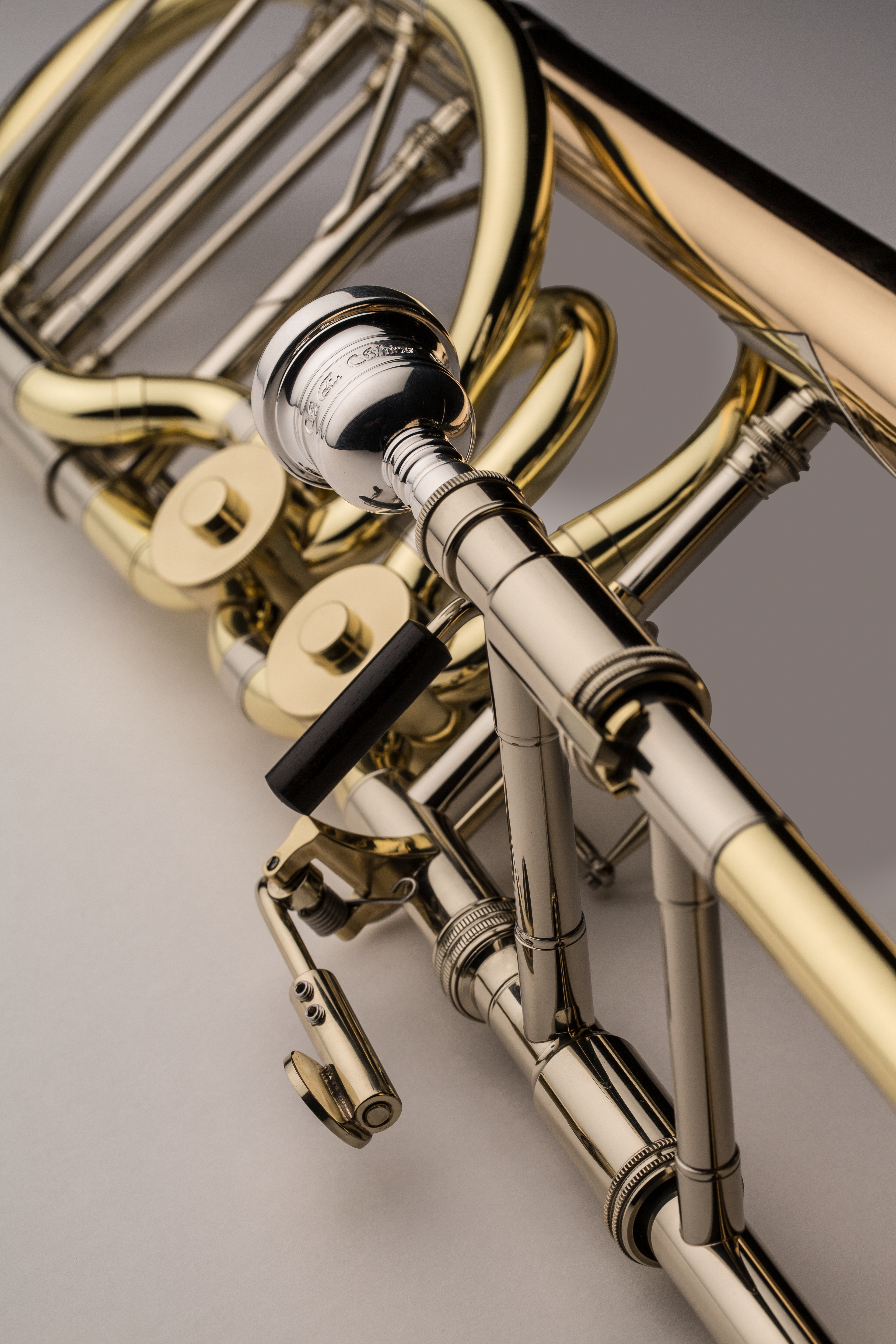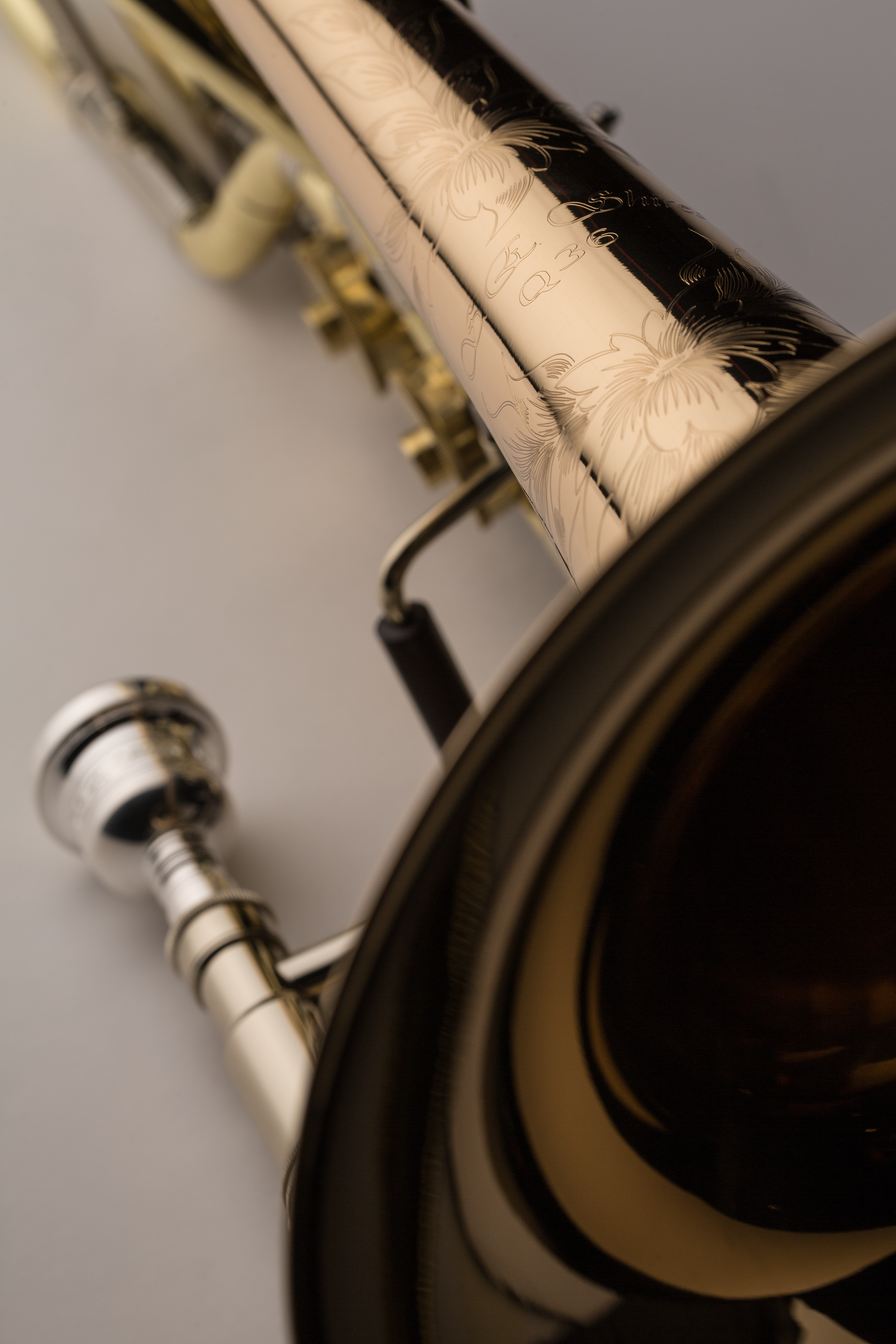 Wszechstronny puzon basowy TBQ36GR charakteryzuje się klarownością dźwięku i doskonałą projekcją, z których słyną instrumenty S.E. Shires. Czara QYB o średnicy 9½ cala, wykonana ręcznie metodą młotkowania, ma dwuczęściową konstrukcję z lekkiego złotego mosiądzu z lutowanym rantem. Zapewnia czyste, donośne brzmienie z doskonałą projekcją i pełnym, głębokim niskim rejestrem. Suwak o szerokiej menzurze 0.562 cala, wykonany z żółtego mosiądzu w standardowej grubości, oferuje szerokie brzmienie przy zachowaniu klarowności i barwy dźwięku. Niklowy krąglik suwaka nadaje artykulacji ostrość i jasność. Niezależne wentyle obrotowe pozwalają zachować skupienie dźwięku w całym zakresie bez utraty komfortu i przejrzystości w rejestrze wentylowym. Niezależny system zaworów zapewnia większą elastyczność w wyborze pozycji suwaka i wentyli. Puzon Q36GR jest doskonałym wyborem do każdej sytuacji muzycznej.